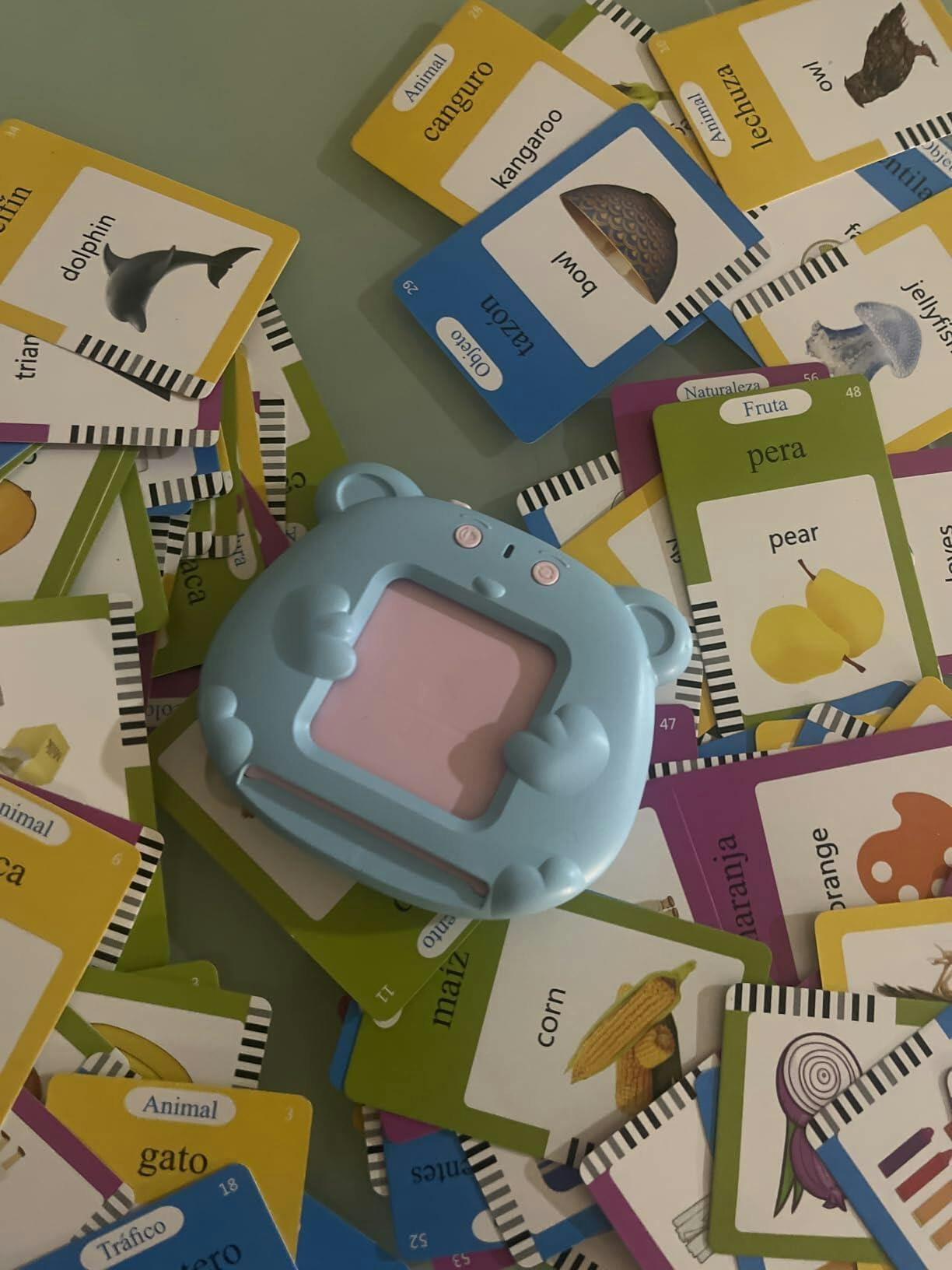 - Insert the card into the Ladiosa flash cards educational toys, a key cycle function, you can repeatedly read and learn, no need to insert the card again. 3.5x4.2inch-perfect hand-held size, toddlers can also use it independently.